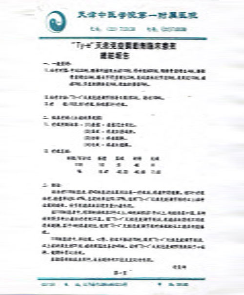 臨床報告編號#1:1994年,天津中醫學院第一附属醫院臨床觀察228例病患,臨床主要在醫院各院部進行,,包括針灸部,內二部,腎內科,消化部,腫瘤科,內分泌科,內一部,心內科,總數228人